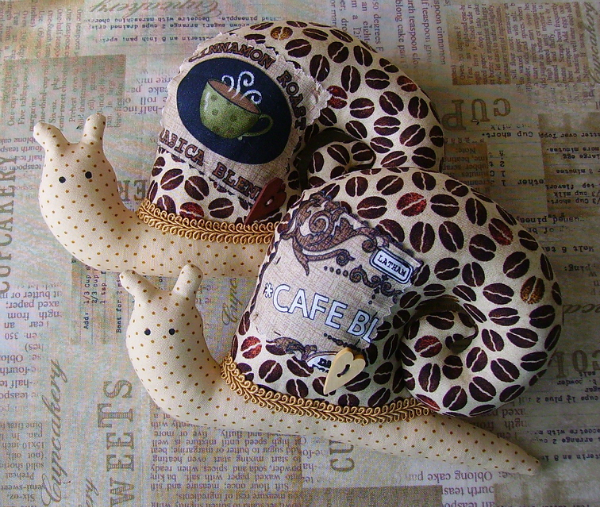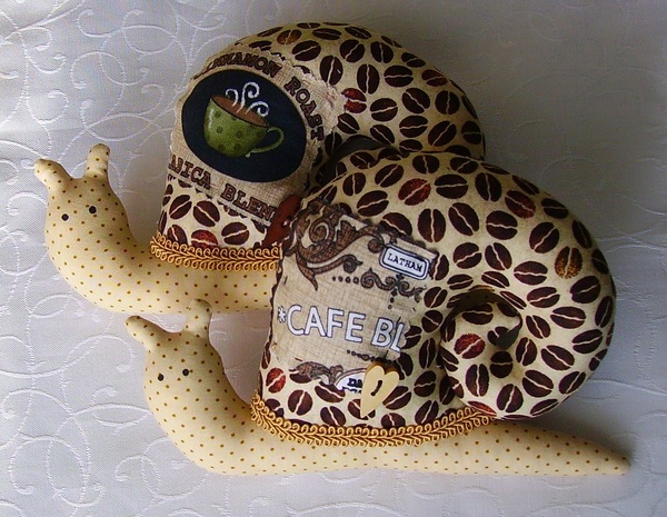 После предновогодних заказов я устроила себе небольшие каникулы и входить в рабочий режим решила с простых и уютных игрушек- улиток. Пока покажу кофейную парочку, а позднее выложу остальных.