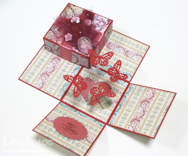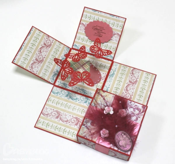 И вот она раскладывается - в середине конечно же 2 любящих сердца (как же без них в такой день!!!) ииииии .... парящие бабочки ))))) На 3х сторонах будут небольшие фото на вспененом скотче (опять же всё паряще и воздушно))))