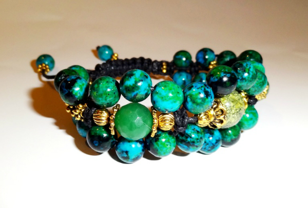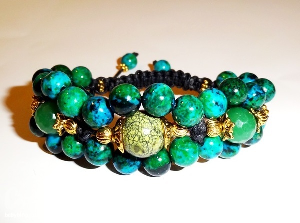Бижутерия для слингомам. Слингобусы. Грызунки.1. Браслет шамбала-эксклюзив "Лесная фея". Содалит, агат тонированный, змеевик, золотистая металлофурнитура, вощеный шнур.