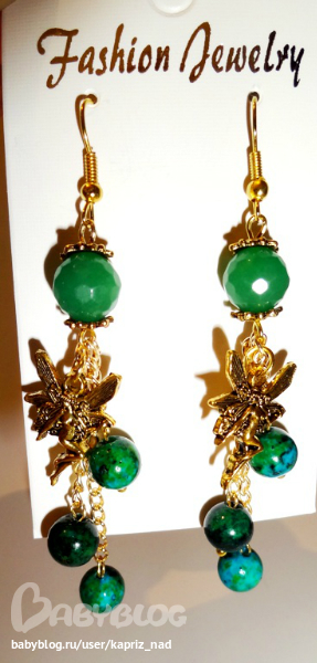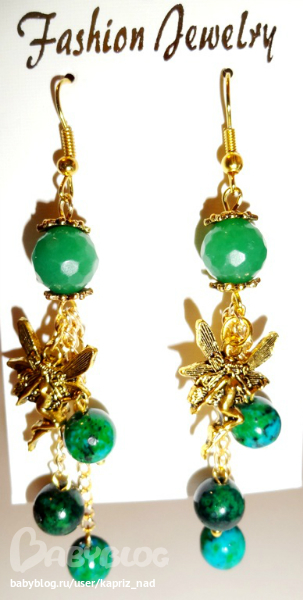 2. Серьги "Лесная фея". Содалит, агат, золотистая металлофурнитура.