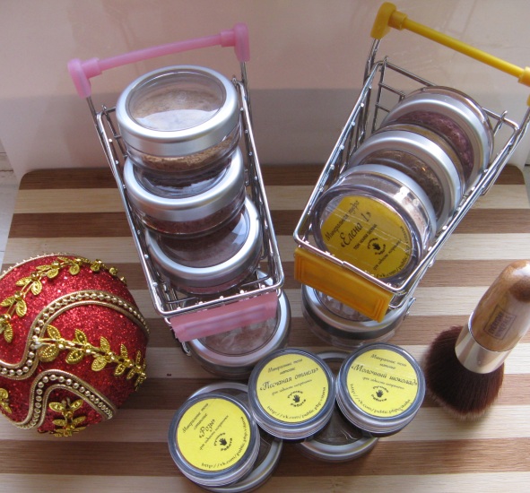 А тут попросили сделать минеральную косметику для детской фотосессии на 30 человек :) Получился целый минеральный "магазин": пудры детские, двух оттенков - посветлей и чуть темней (если вдруг понадобится скульптурирование), румянки 3 оттенков - светло-розовые, розовые поярче, и персиковые.