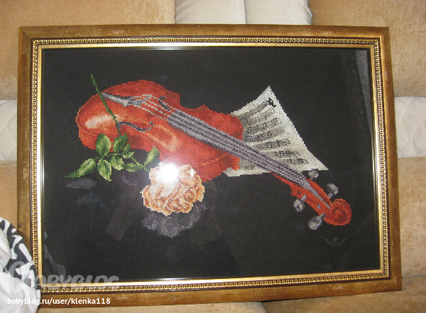 Девчонки, хочу похвастаться- моя первая работа: Золотое руно "Музыкальный этюд". Мои впечатления от работы- вышивалась легко но ооочень долго, с октября по 8 января,даже не успела к маминому др, 9 числа отдала в багетку, и сегодня забрала)Сначала думала, что дорого оформление выходит, а сегодня как увидела, ахнула)мне очень понравилось.Не зря ночами сидела) Вышивала в основном по вечерам, когда ребенок спал. И мне очень понравилось на черной канве вышивать, удобно. Хотя до этого в детстве вышивала уже одну картинку, но там и размер был поменьше и вроде крестики побольше, и канва белая.Самая трудность для была это вышить бекстич, так толком и не разобралась как его делать. Пошла дарить запоздавший подарок)))))