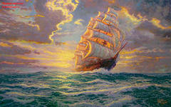 я всегда(!) вышиваю от центра. На сегодня - вышит корабль, слева от него, вверх, и правый верхний угол. Вблизи ничего не видно - просто разноцветные крестики, при удалении (чем дальше, тем лучше) становится похоже на оригинал, но немного проще, примитивнее что-ли) Оранжевый - это самые яркие цвета на картине, но только на оригинале они не совсем оранжевые....