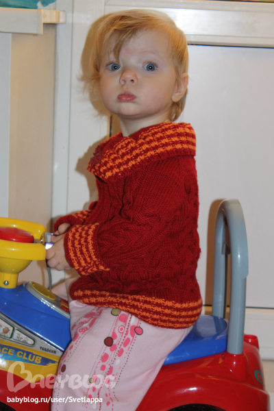 не, я по выкройкам-схемам не умею))))))))))))сама, по мере вязания придумывала как косы пустить и где))) пока алиса спит днем, если светло еще в комнате - вяжу))) начала вязать наверна с осени)))))))