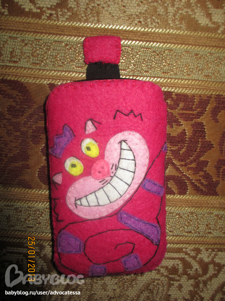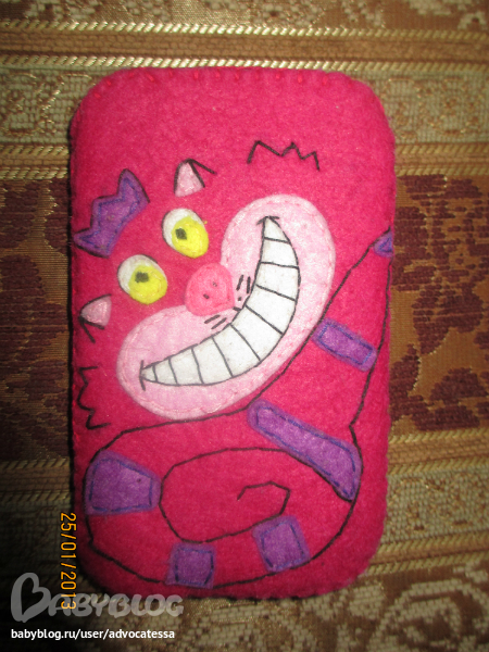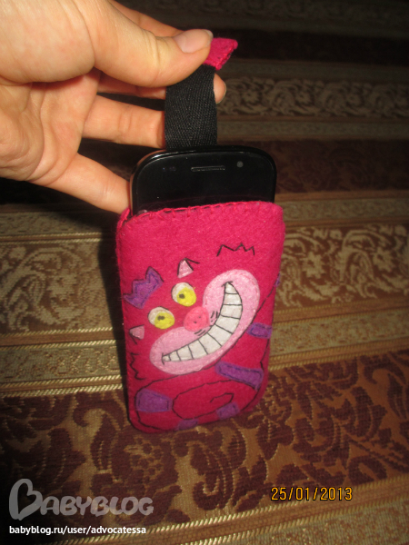 Валерия публикую свои новые чехольчики из фетра для телефонов! Картинку полностью взяла у Валерии, шила не на продажу, только для себя любимой)))) и для лучшей подруги, поклонницы Алисы в стране чудес!!!!! Валерия, еще раз огромное спасибо за чудесную идею чеширчиков и разрешения выложить в сеть! Это для подружки!