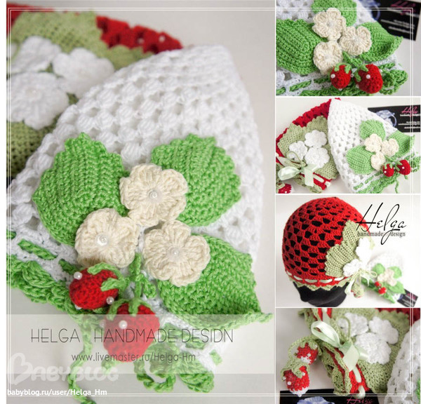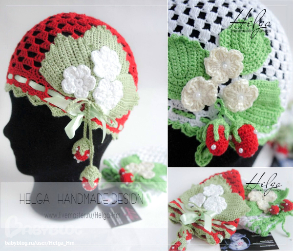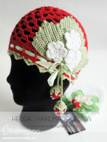 "Клубничный коктейль",связались две шапочки на июльскую тему клубники))