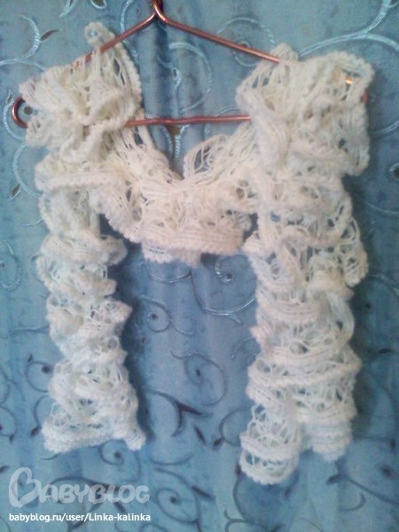 Да, все просто и эффектно. Моя доча сказала такой шарф только по праздникам носить )). Еще юбку можно связать, только пряжи надо больше, вот например http://www.by-hand.ru/item/view/29019 . Ну еще может комбинировать