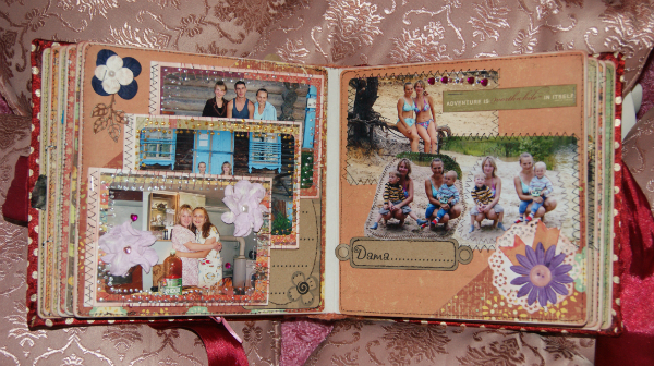 Анютка и ее лучшей подружки! Обложка 22 на 22 см. Страницы 21 на 21 см. Обложка текстильная на синтепоне, завязывается на длинную широкую ленту. Страницы выполнены по индивидуальному заказу (фото не вынимаются), есть места для журналинга, много секретиков. Разнообразный декор. Вон он: