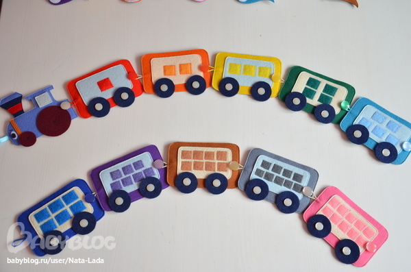 Внутри кармашки, можно сажать в вагончики цифры, которые Ольга тоже для нас сделала)