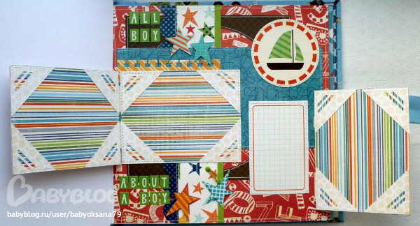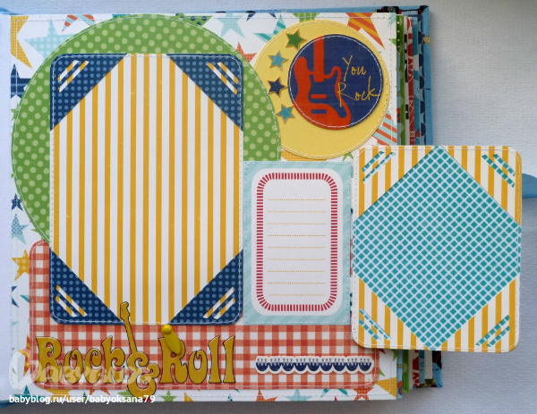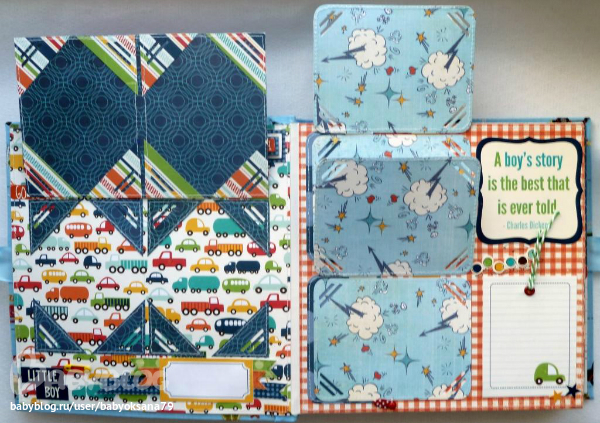 Классный альбом! Очень понравился, стильный, яркий! Эта бумажка вообще бомбавская! Я её тоже припасла для будущего сыночка :)))