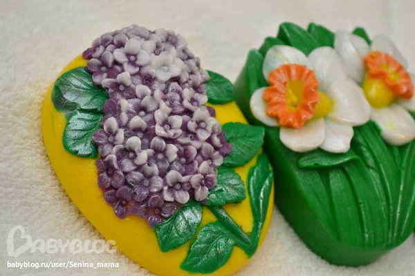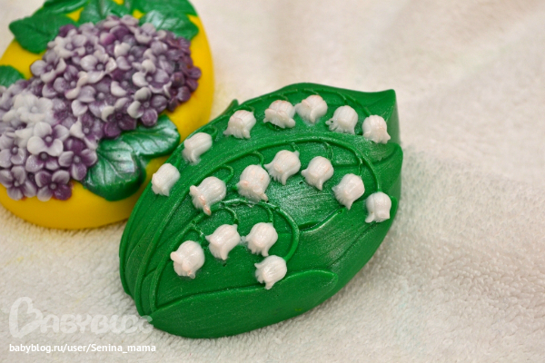 По мылу, обогащены все маслом виноградных косточек, ароматы "Сирень", "Лунная тубероза" и "Ландыш".