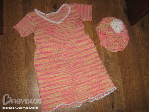 Платье спицами лицевая гладь , отделка крючком белая нить, а само платье вазала из головы, поэтому схемы у меня нет.Это просто нитки цветные меланж.
