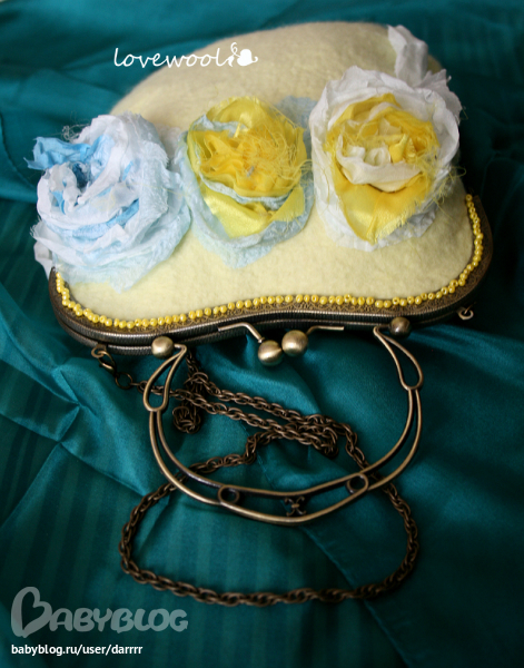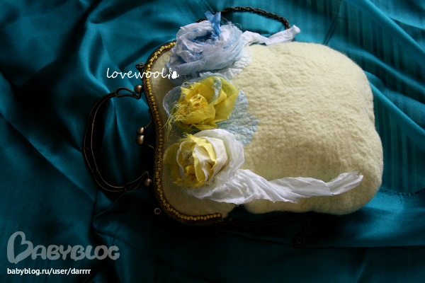 ридикюль в тон платью. украшен шелковыми цветами, на натуральном шерковом подкладе, рамка-замок металлическая (немецкая) под латунь и длинный ремешок.