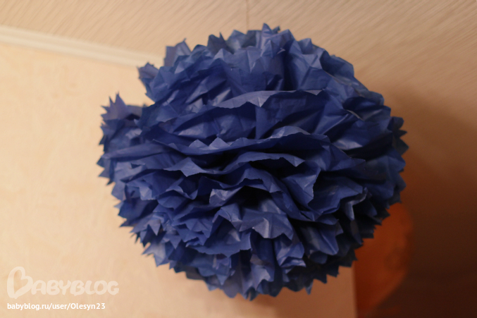 . Сделала 4 больших (по 10 листов бумаги ТИШЬЮ размер 50*65 см,на один шарик ) и 2 маленьких ( 8 листов на один шар, размер 50*65 см, НО я разделила на две части)