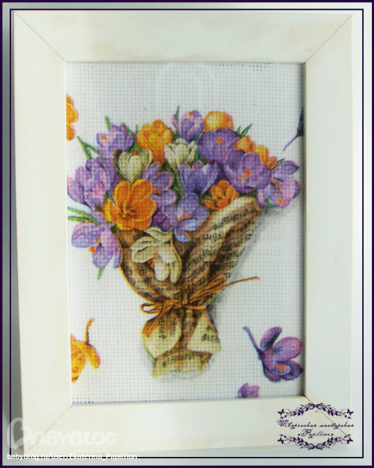 По технике все просто. Сначала взяла рамочки из Икеи. У них вместо стекла пластик прозрачный. На этот пластик приклеила канву, завернув ее края назад, чтобы она не двигалась. На клей для ткани Таир через файл приклеила салфетку к канве. Сами рамочки белыми мне показались скучными. Помазюкала из немного медиумом антик Плейд 819, забрызгала аэрозольным матовым лаком Марабу.