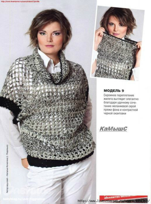 вяжется от горла,регланом, по схеме) я думаю так как и написано на 48-52. на фото тетенька где-то 50-52 размером. все,конечно будет зависеть от того какими нитками или крючком свяжете, если возьмете 4 или 3 крючлк, ес-но у вас меньше размер получится) я не очень опытная, всего 3 года вяжу)