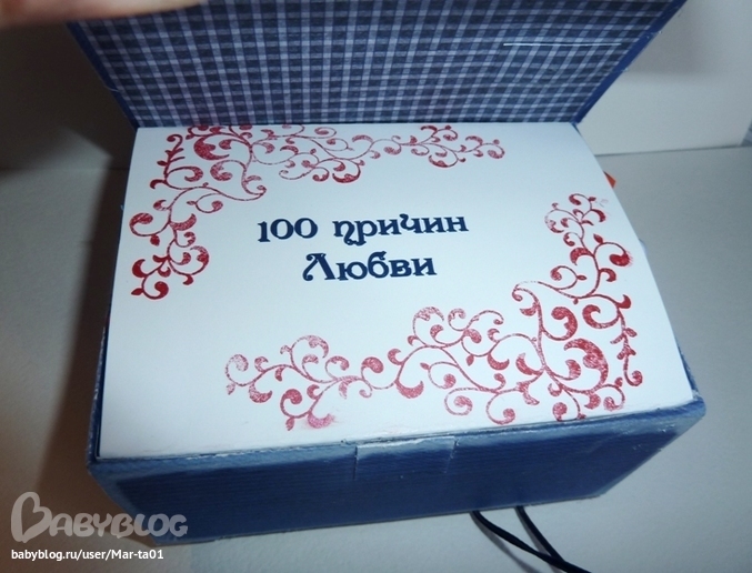 Причины распечатала на сердечках и свернула в трубочку. Честно сил не было вязать завязочки, замучилась вырезать сердечки.