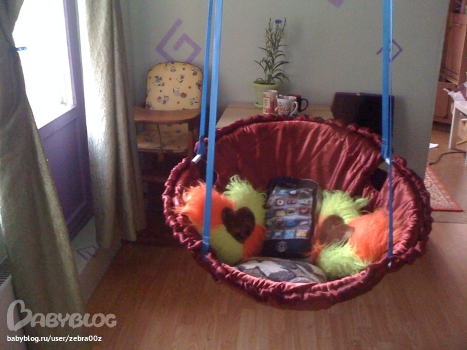 у нас похожая люлька. только вес поменьше конечно выдерживает и форма не круглая , а овальная и есть ремешки крепящие ребенка. Мы в магазине покупали за 950 руб. До сих пор ребенка спать укачиваем в ней на ночь по настроению. Муж сделал крепления в проеме дверей всех комнат и мы туда сюда эту люльку таскаем.