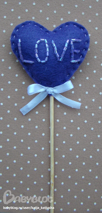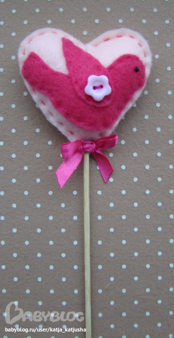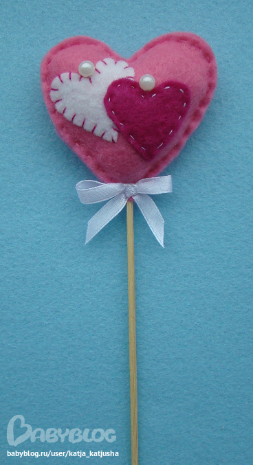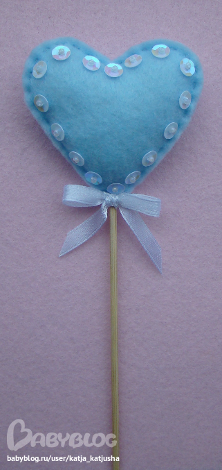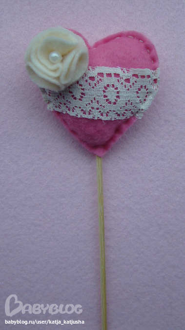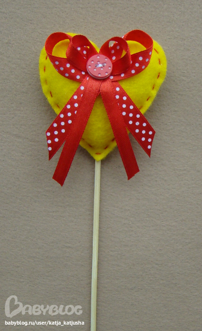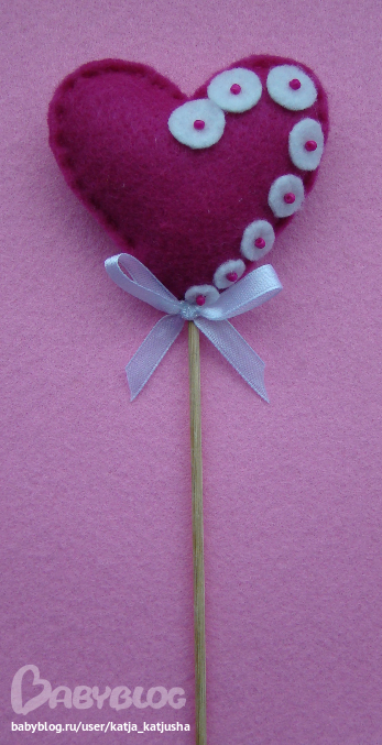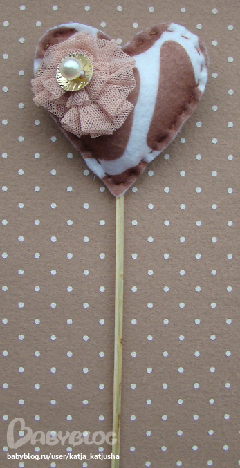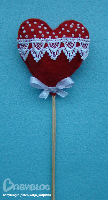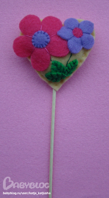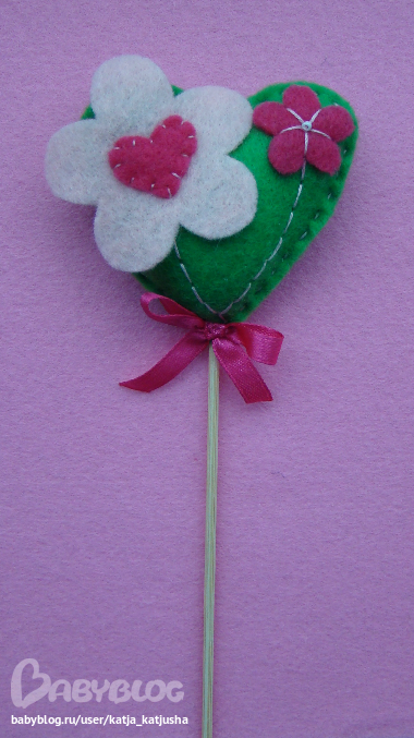 Высота изделия с палочкой 26 см, сердце 6,5 х 6,5 см.