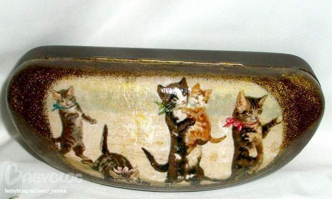 Потом попробовала декупажить очешник и обложку для паспорта (кожазам) спасибо видео-уроку в интернете!