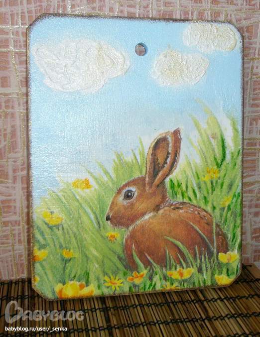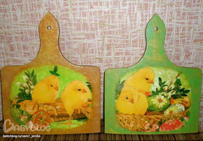 Моя первый опыт в технике декупаж- эта дощечка Пасхальная.