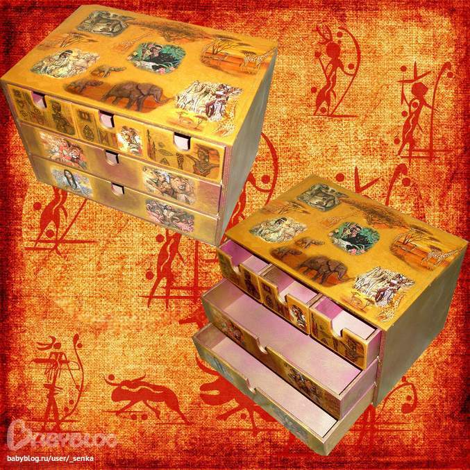 Мини -комод (оформление) раскритиковала моя замечательная подруга-дизайнер ( и поделом мне! Захотелось все скорее наляпать, не продумала что значит Африканский мотив )))