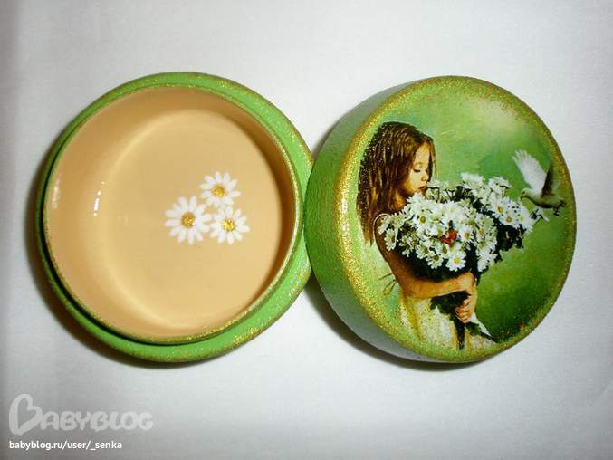 Делала все в основном для себя и для друзей. Пробовала декупажить все.что под руку попало. Выложу то, что успела заснять