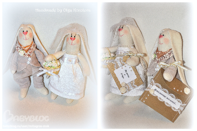Позитивные зайки-улыбайки будут совсем скоро вручены в качестве подарка на свадьбу. В лапках по традиции карточка с именами молодоженов и конвертик для денежной части подарка.