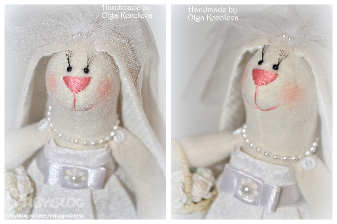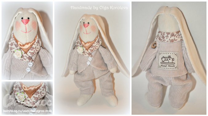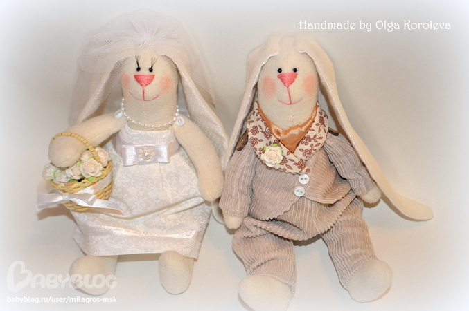 Зайки росточком около 20 см, сидят и стоят с опорой. Повтор делать не хотелось, образы сделала совсем другое. Кажется, получилось неплохо=)