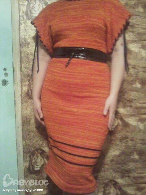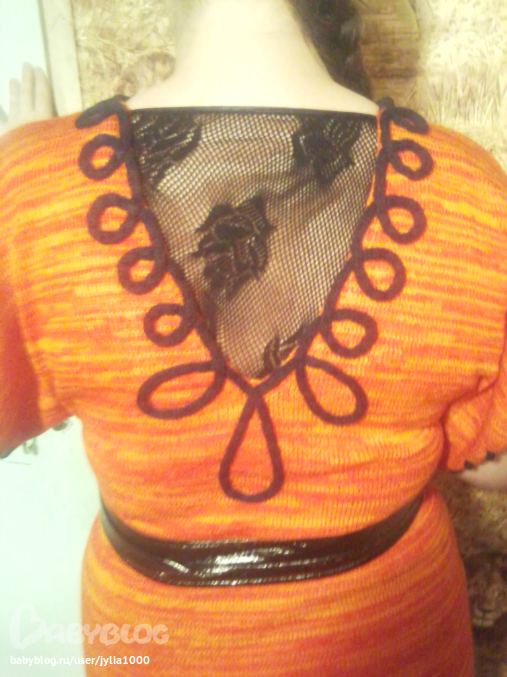 Красотень! По стилю прямо моё (ну наверно только без вставки кружева на спине), и особенно пояс. Здорово получилось, я давно о вязальной машине мечтаю, нужно с новыми силами подсесть на мужа!