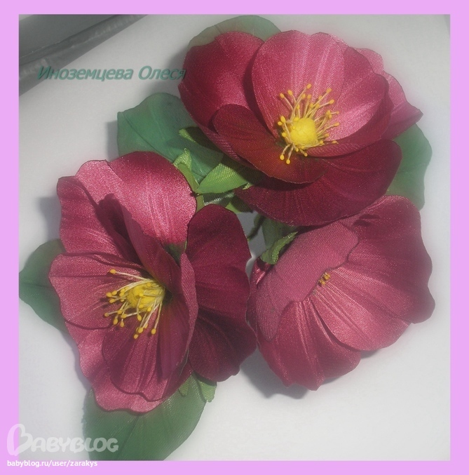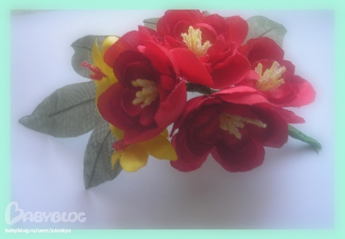 Первый раз попробовала сделать веточку шиповника. 18 см в длину.На голове смотрится просто замечательно