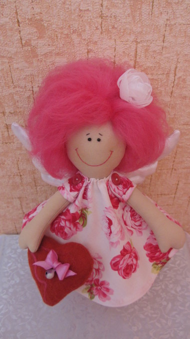 И вот результат моей работы- исходила из того что было под рукой -габардин,хлопок,холлофайбер,шерсть для валяния,вуаль и всякая мелочевка которая в закромах у моего хомячка. Куколка первая ,но точно не последняя-это так захватывает.Муж в восторге,дети тоже))))))