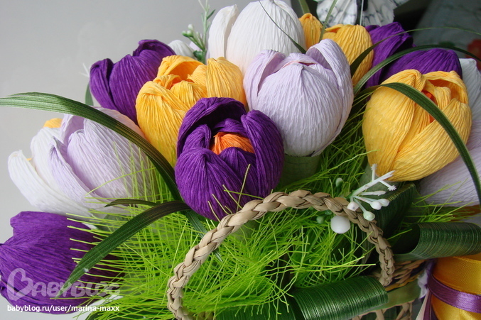 Наверное, есть вечно модные розы и сезонные цветы: тюльпаны, крокусы, пионы. ;)) Многие спешат сделать крокусы и тюльпанчики именно сейчас, когда настоящие живые весенние первоцветы вот-вот готовы выпустить первые ростки. Все-таки, чуть -чуть опередить естественную поступь матушки-природы пыталась еще небезызвестная принцеса, требовавшая подснежники зимой)) Вот и я, чувствуя себя немного творцом, спешу порадовать своих близких нежными крокусами раньше всех. Девочки, на ваш суд, очередные )))) крокусы.