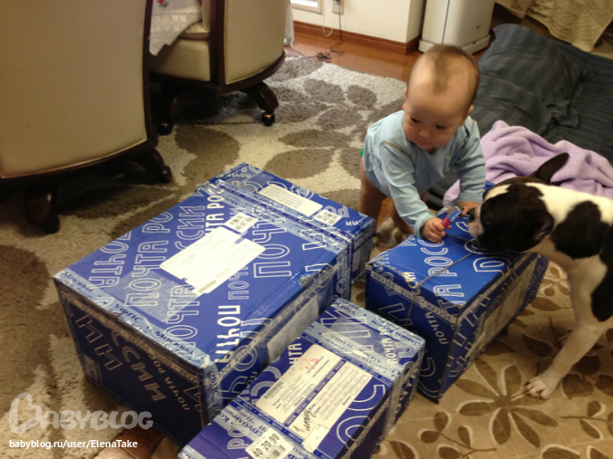 Звонок в дверь, вижу по камере, что почтальон с двумя посылками, радостная несусь к двери с ребенком на руках, собаченция за мной следом. Почтальон с такой внушительной посылкой в руках, сверху еще одна и протягивает мне 4 листочка на роспись! Я обалдела. 4! посылки за раз, вот это праздник праздничный