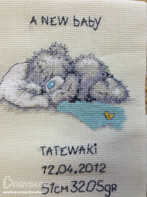 Фотографии загружаются как попало и вообще не загружаются! Во то, что я ждала больше всего! Метрика для Татеваки. Настя, я в восторге, она чудесная, такой мишка лапулик, рамочку я обязательно куплю и потом покажу как в рамочке будет. Настенька, огромное спасибо. Я прямо прыгаю от радости. Ошибочка в дате, но я все сама поправлю.