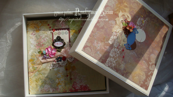 СкрапбукингЗаказной альбом 30на30 см из 16ти страниц. Альбом в переплете с мягкой текстильной обложкой и коробкой для хранения.