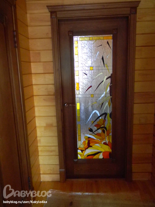 спасибо) да какой тут мк, делаешь эскиз - кладешь под стекло, обводишь все линии контуром. У меня тут была еще свинцовая лента. потом заливаешь красками лаковыми. Тут важно чтоб краски были качественные. и приноровиться нужно. все не с первого раза получается) у меня каждая дверь была лучше предыдущей)))