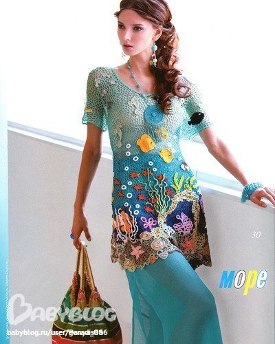 только подлинее немного, чтоб как пляжная туника. Сам рисунок можно немного другой, только чтоб тематика моря сохранилась и цветовая гамма. Возьметесь?