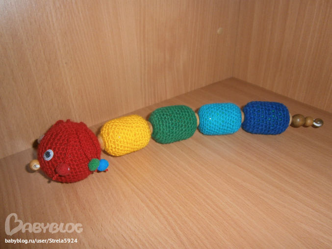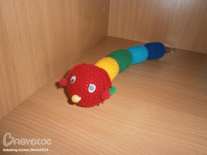 Наконец-то дождалась, когда дочь начнёт играть в сделанные мною игрушки. С удовольствием играет в кубик, растёгивает и застёгивает горошек, перетягивает пуговицы на банке-перетяжке, рассматривает рыбу в бутылке с водой. Я довольная как слон))))) Решила ещё что-нибудь сделать, раз мои самоделки стали пользоваться спросом. Связалась на одном дыхании для дочки игруня))) Она ещё и гремит)))))