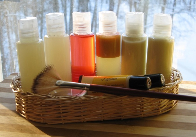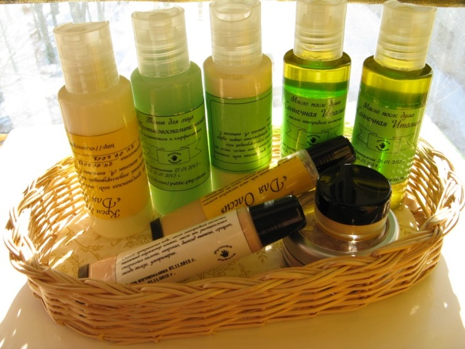 Кремы увлажняющие с витаминами и аллантоином, минеральная пудра (тон индивидуальный) и масло после душа с макадамией - легко впитывается, хорошо подходит для сухой кожи. Базовое масло виноградной косточки, вот думаю попробовать масло рисовых отрубей, оно еще лучше впитывается. Хотя не знаю, куда уж лучше-то :) Просто хочется "экспериментировать" :)