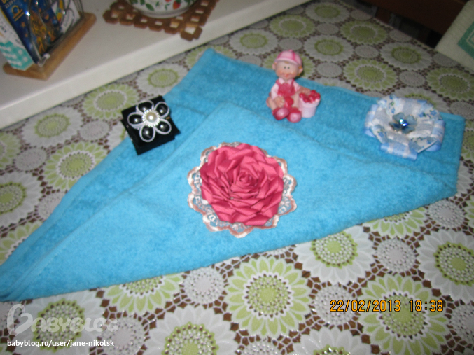 Очень мягкое полотенчико, сувенирчик и обалденные украшалки для меня, сделанные Яниночкой)))