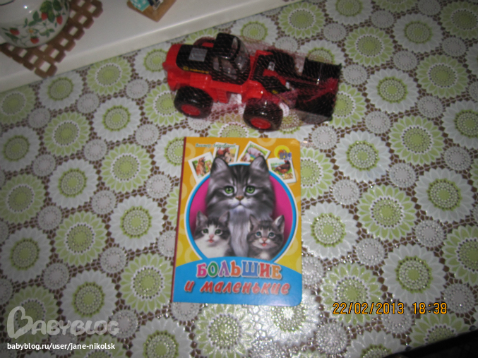 Кирюха довольный новой машиной!!! А с книжкой замучил меня))) Вместе с ним я должна смотреть)))