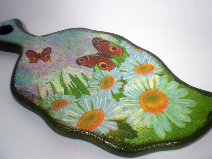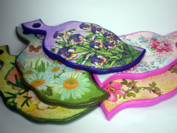ОТЛИЧНО!  Только на досочках с розами и ромашками граница немного видна, надо было матив не вырезать, а вырвать  или получше зашкурить, А В ОСТАЛЬНОМ ЗДОРОВО - ПРАЗДНИЧНО!  А еще я делаю так - когда матив уже приклеила на место и пока он еще мокрый я по краю его "общитыпаю" зубочисткой - волокна салфетки при этом обрываясь вытягиваются и граница становится менее заметна. :)