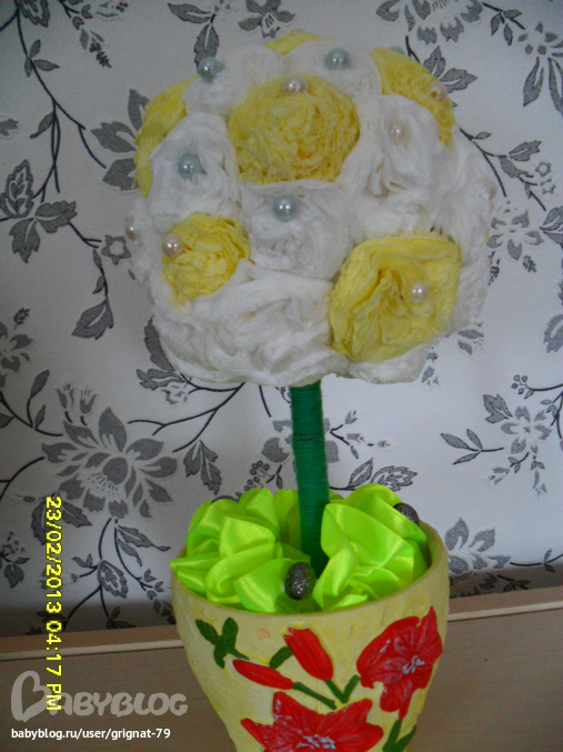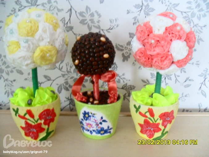 Вот такие топиарики к 8 марта слепились. Ох, и увлекательное занятие!