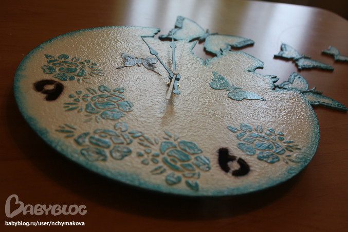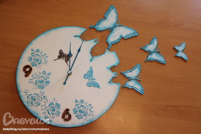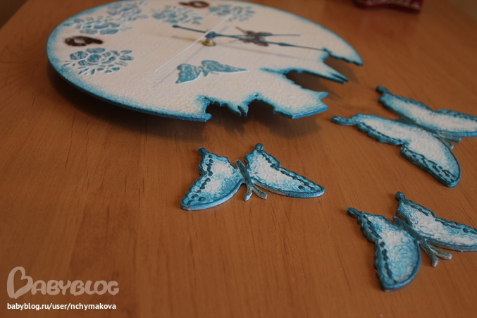 забыла написать о том, что бабочки и цветы в технике шеби-шик делала (с использованием свечи и 2х цветов красок).