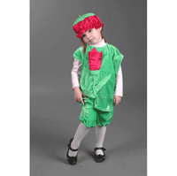 оденьте в зеленую кофточку и штанишки,на рукава прицепите лист тюльпана из бумаги,вокруг головы оберните полоску,на нее наклейте лепестки.Можно по кругу и скрепить сверху клеем.Можно просто вырезать и спереди наклеить
