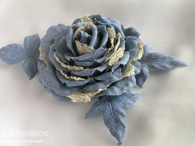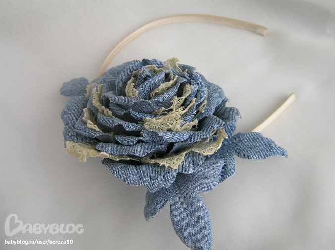 Делалось украшение на заказ из джинсовой ткани с добавлением кружева.Можно брошью носить,а можно и на ободке.