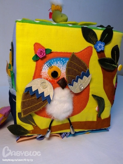 У Вас супер-пупер-мега-кубик!!!!!:) Такие идеи необычные-я таких нигде не видела! Сама шила дочке кубик, но с более примитивными идеями и нам в год он уже не интересен:( Ваш утащу к себе в закладки-буду еще один шить!
