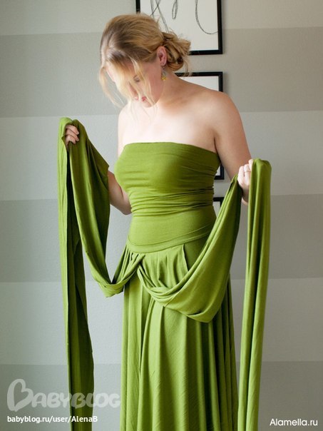 Только посмотрите какое количество нарядов может получится из одного платья. И это далеко не все модели. Проявите фантазию и Вы сможете сделать до ста моделей платьев, туник и сарафанов. Платья с открытым верхом, греческие модели, платье с одним плечом, закрытые и открытые на спине — многообразие моделей просто поражает. Это идеальный вариант для всевозможных поездок или событий, на которые «непонятно, как одеваться». Кроме того, платье трансформер удобно использовать для подружек невесты. Хотите красивую свадьбу с подружками одетыми в одной цветовой гамме? Вам поможет платье трансформер. Одна и та же выкройка и огромное разнообразие моделей на любой вкус. Ещё один весомый плюс этого платья — оно подходит на любую фигуру. Будь вы стройная красавица или даже будущая мама на девятом месяце, платье станет незаменимой вещью для похода на любое мероприятие.