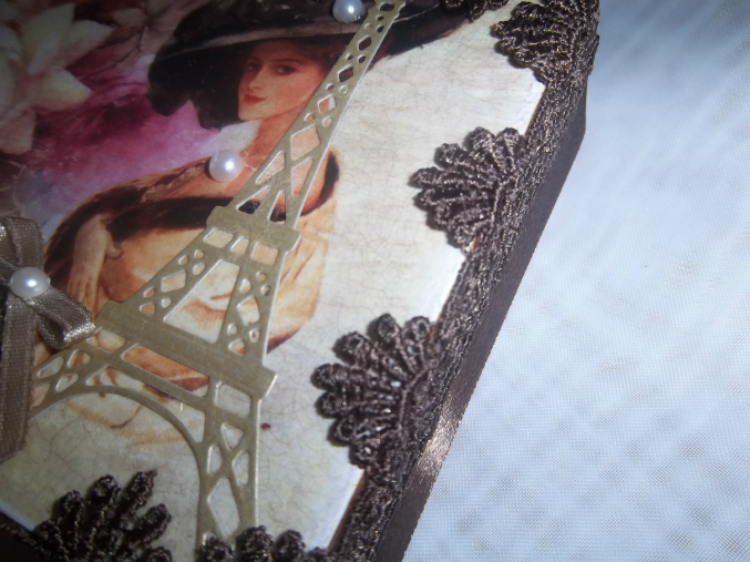 ДекупажШкатулка для денежек для моей люимой сестренки! Заготовка, декупажные карты. скрап-элементы,лак кракелюрный, краски акриловые,клей, тесьма))))